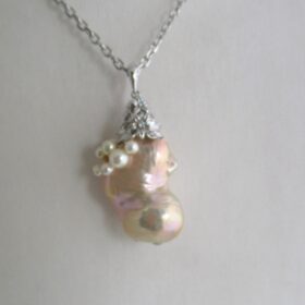 真珠に抱かれて美しく輝く宝石の製法は当社の秘密です。カジュアルにも使い易いこの