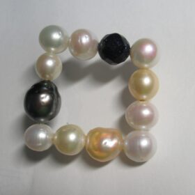 写真上は貴重なアコヤ真珠8㎜を6個使った2024年オリジナル指輪(K18WG手造り)。