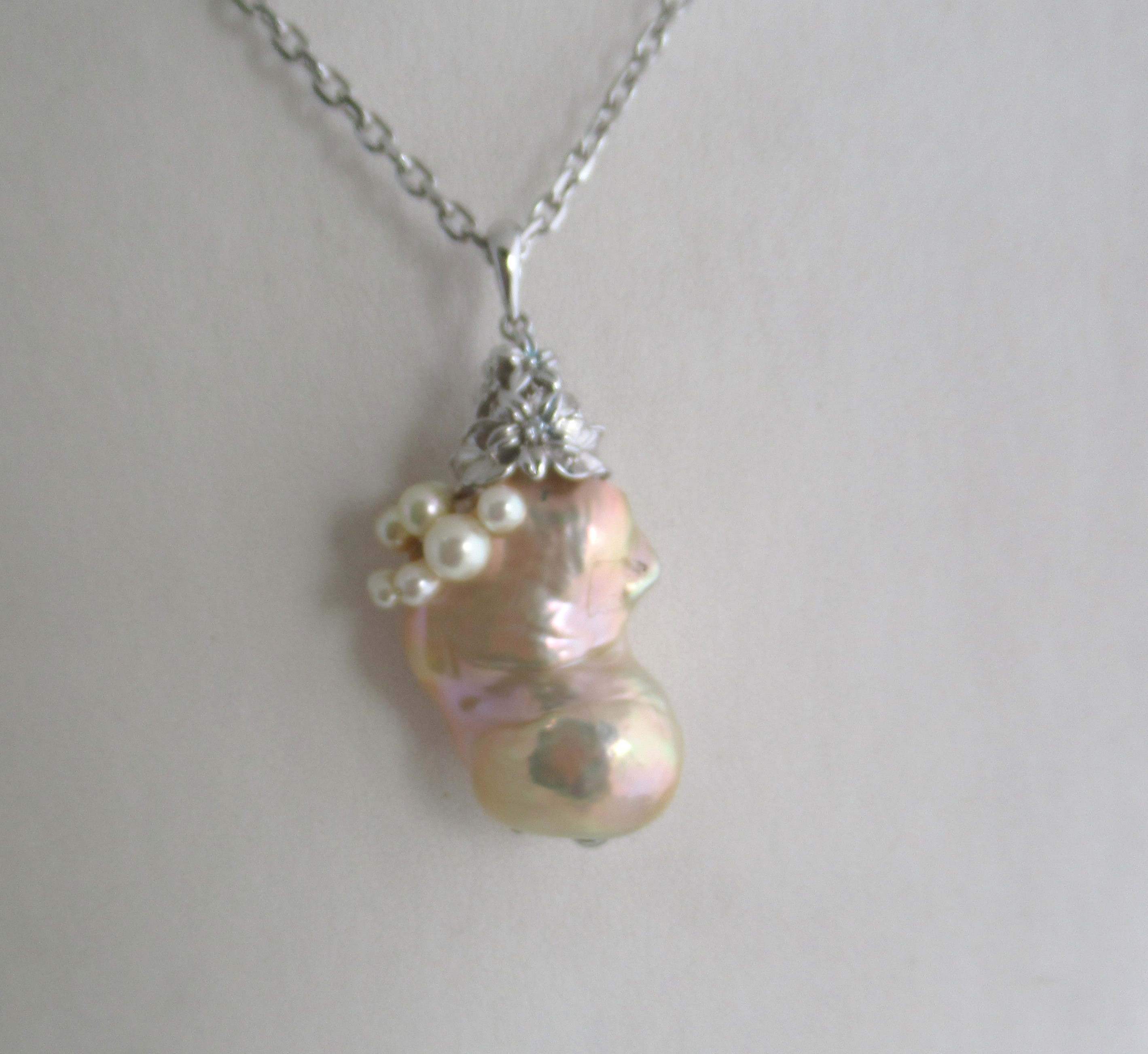 • ガーネット、ラピス、淡水真珠のペンダント、¥68,000+鎖¥6,000